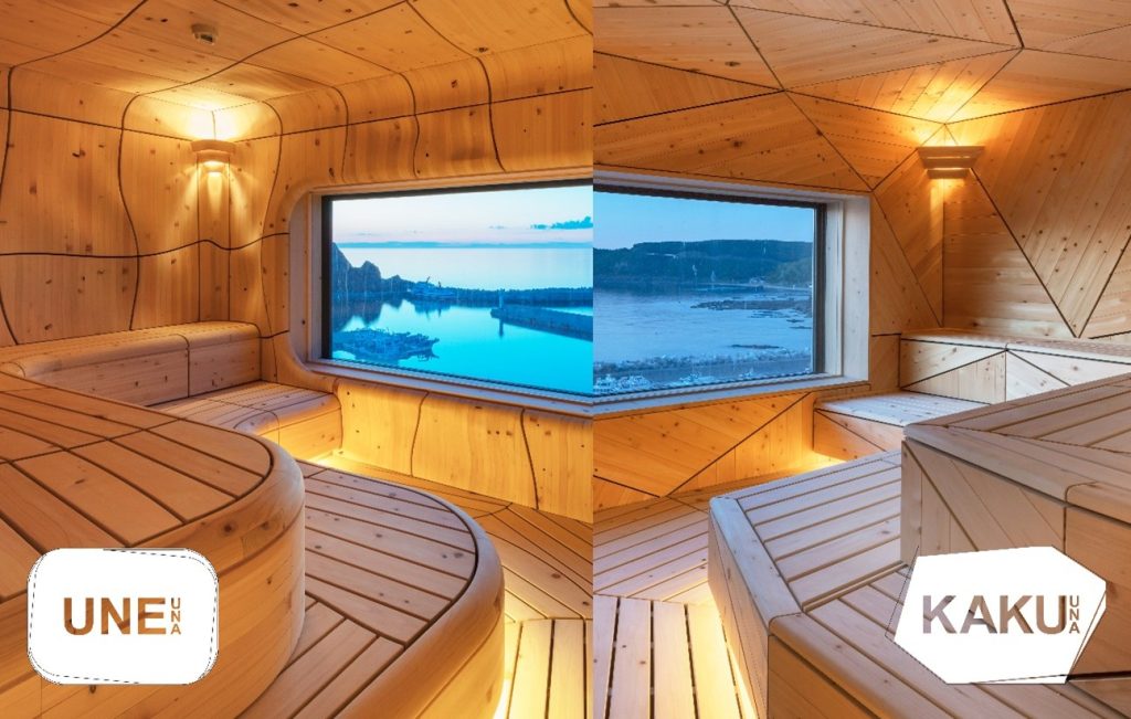 北海道・知床半島にある北こぶし知床 ホテル&リゾート。そのホテルにある世界遺産を望む流氷サウナがリニューアルしました。流氷をイメージして直線的なデザインを力強く表現したKAKUUNAと、木の洞窟をイメージして緩やかな曲線でうねりを描いたUNEUNA。