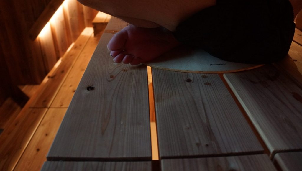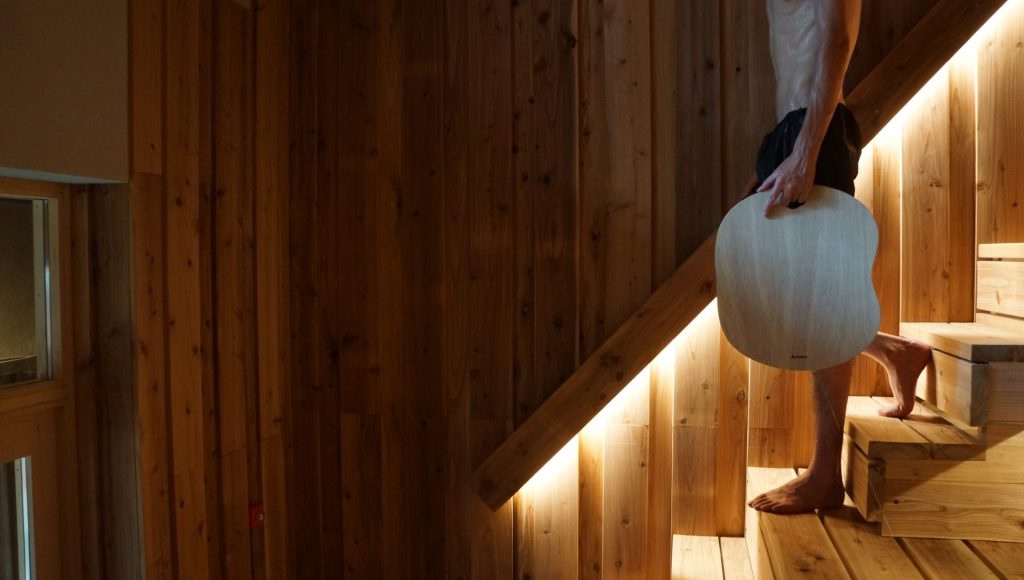 フィンランドでは一般的なサウナ室内でのマットに、木製素材が採用されています。現地で体験した木工サウナー大西 @tenoondo が感銘を受けて、日本で再現しました