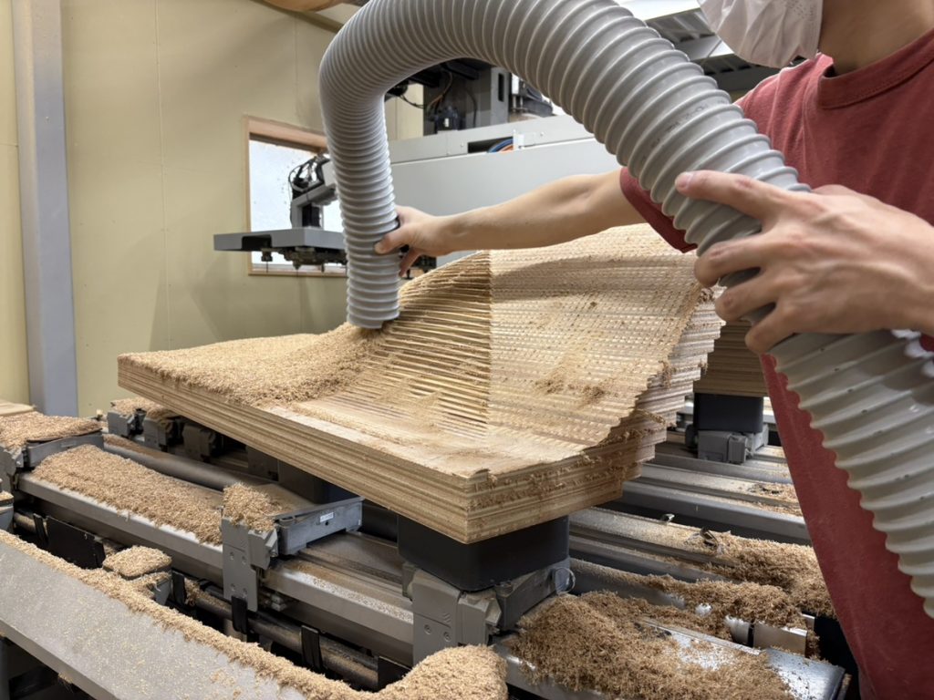地域の木工職人、デジタルファブリケーション、設計者が協働し、木という自然素材をデータと手作業で扱いながら、