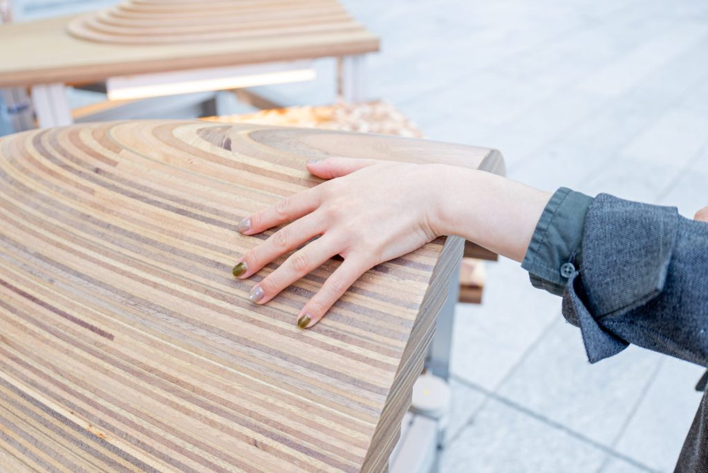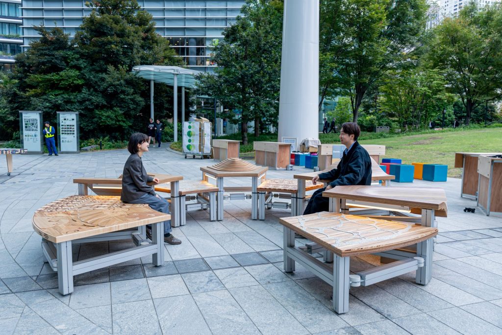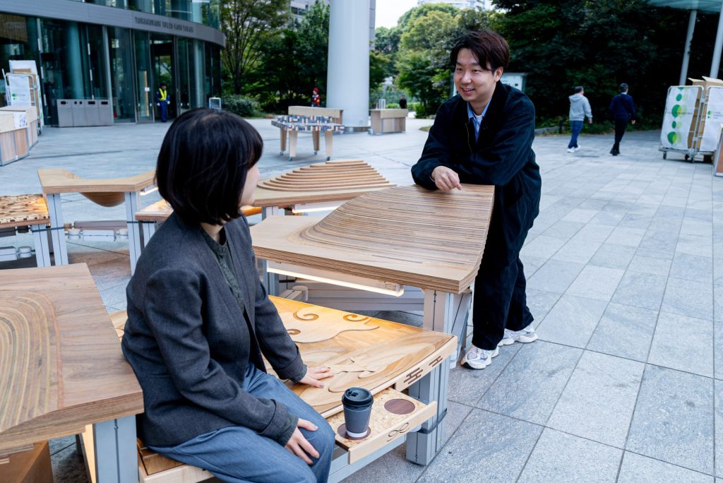 持続可能な社会や未来の暮らし方を掲げ、デザインの力で社会課題に向き合う取り組み「ETHICAL DESIGN WEEK」。2025年度は❝ TOKYO ETHICAL CITY ❞をコンセプトに、業界の枠を超えた共創パートナーとともに、エシカルな活動を発信する3日間の参加型イベントを開催しました。私たちは株式会社船場・装備と協働し、東京・虎ノ門ヒルズにて、木材の多様な魅力を引き出すストリートファニチャーの設計・製作・展示を行いました。